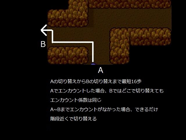 上ルート:Bルートの場合、次の山のエンカウント係数が2歩早く上昇する
